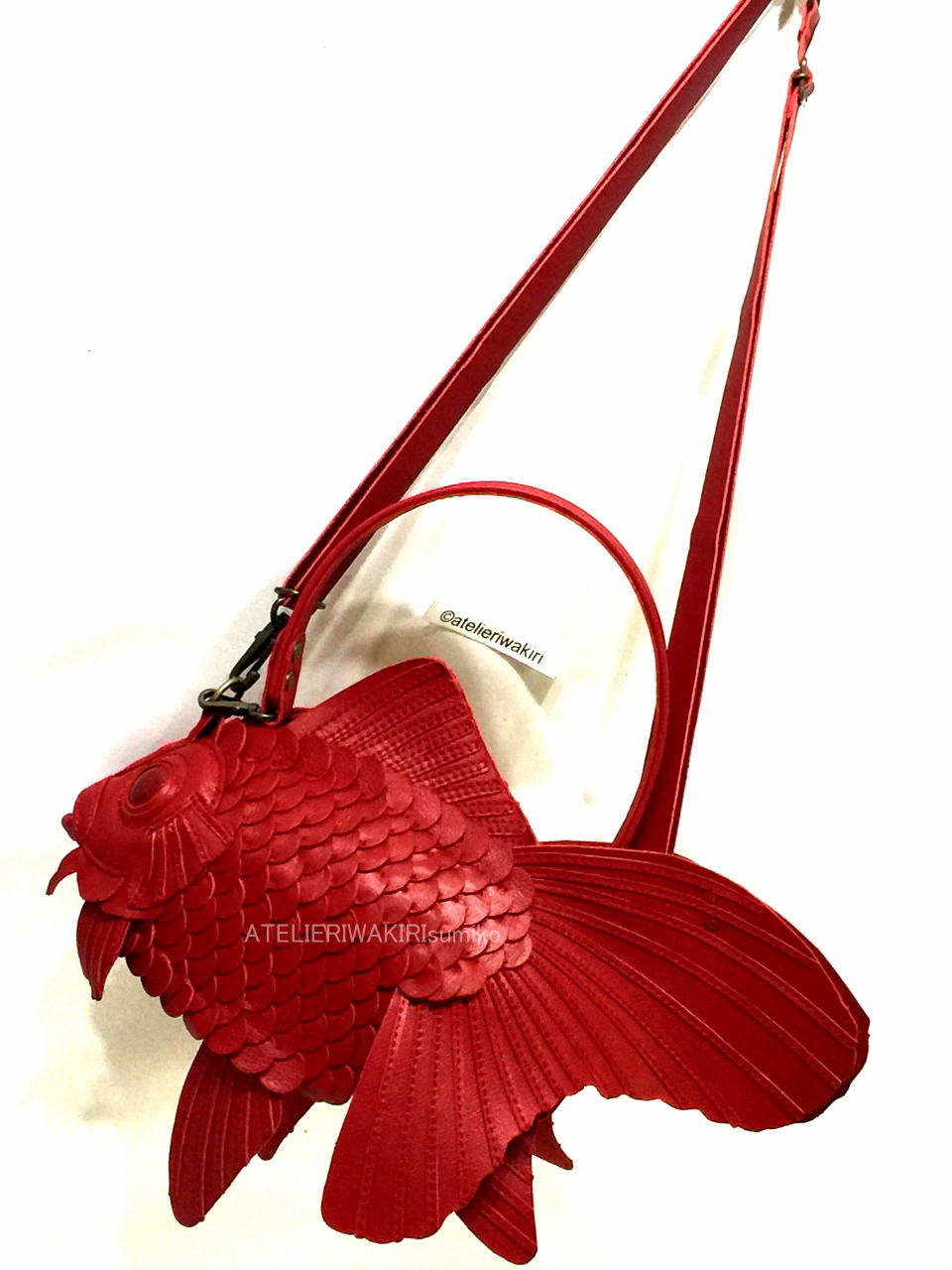 スムース革ショルダー手提げ金魚バッグ(小) サイズが小さく手提げショルダー型です。とても可愛く出来上がりました。